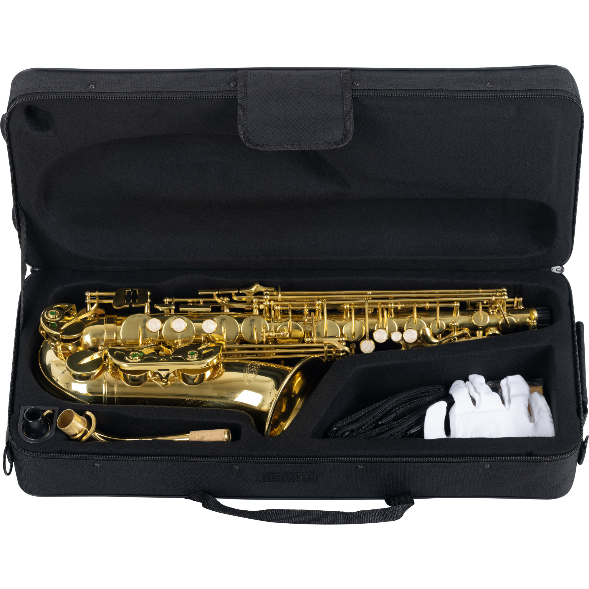 De robuuste lichtgewicht koffer met opbergvakken biedt veilige bescherming voor je instrument en is praktisch als rugzak te dragen! Zo vinden instrument en accessoires betrouwbaar hun plek. Een meegeleverde schoonmaakstok zorgt voor een schoon interieur en kan eenvoudig in de saxofoon worden opgeborgen en vervoerd. De S-bocht, een mondstuk met bladschoef, zijn ook al inbegrepen. Je kunt dus meteen aan de slag! Daarnaast worden een poetsdoek en een paar verzorgingshandschoenen meegeleverd.