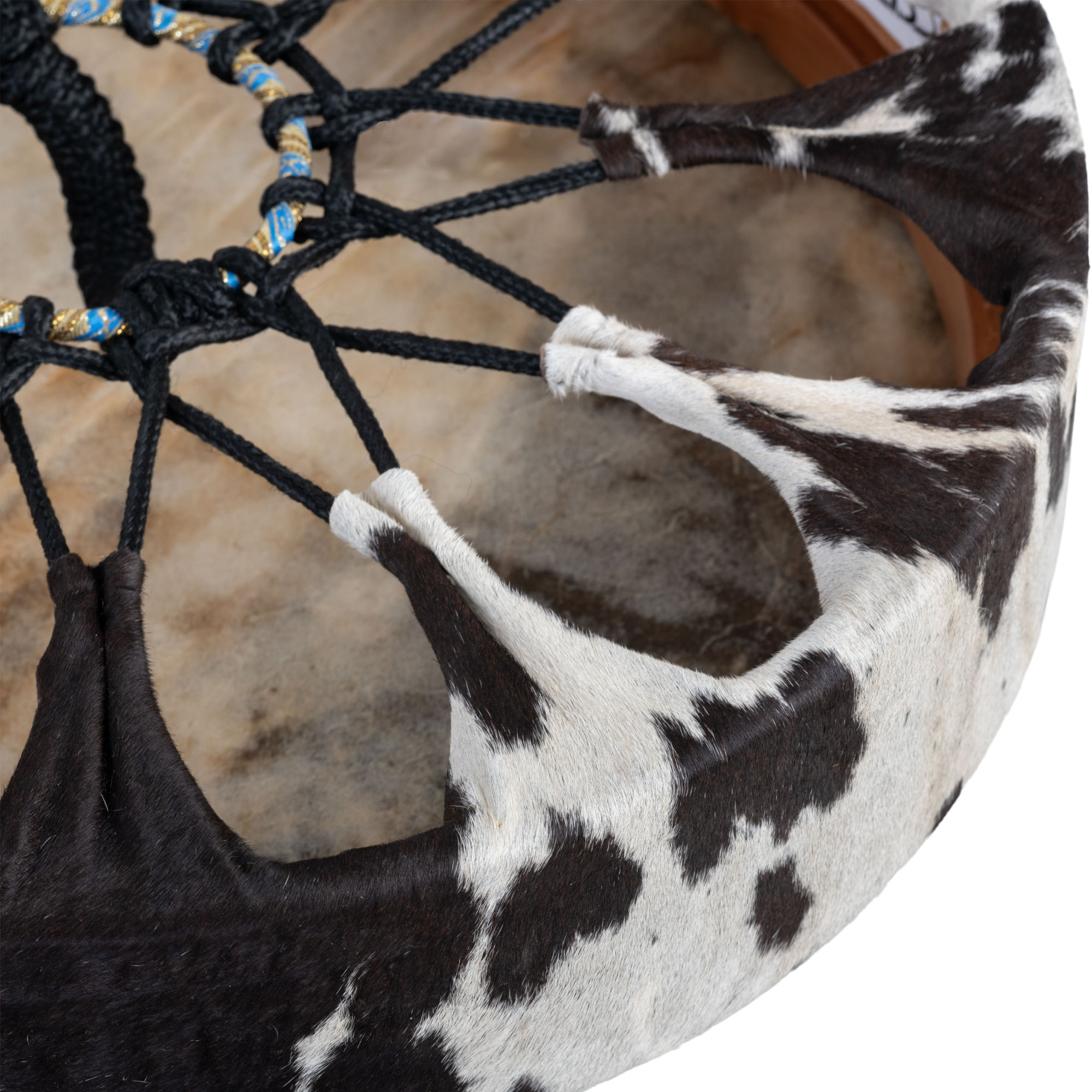 De trommel biedt met Ø 16" (ca. 41 cm) een uitstekende balans tussen diepe bastonen en heldere boventonen, waardoor hij veelzijdig inzetbaar is - van sjamanistische ceremonies en klanktherapie tot muzikale sessies. De krachtige, energetische werking van de klank ondersteunt ontspanning, concentratie en innerlijk voelen.