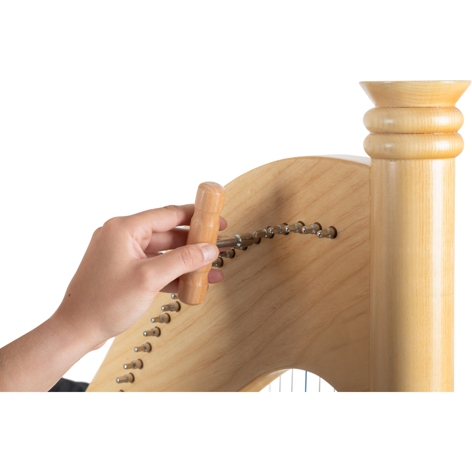Für die ersten Versuche und das leichtere Verständnis ist eine C-Stimmung allerdings genauso möglich. Zum Stimmen des Instrumentes dienen die beiden im Lieferumfang enthaltenen Stimmschlüssel: Während der Vierkant-Schlüssel an den Stimmwirbeln angesetzt wird, dient der Sechskant-Schlüssel den Feinstimmern auf der gegenüberliegenden Seite.
