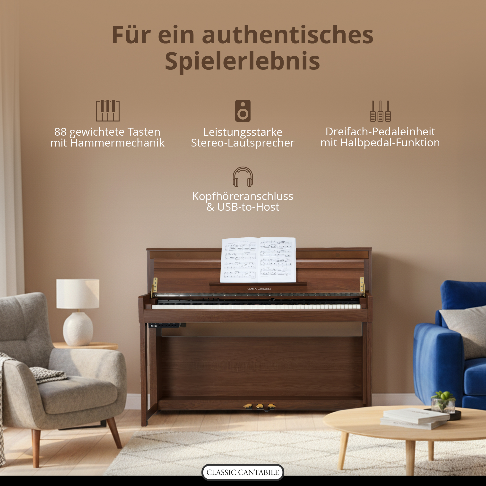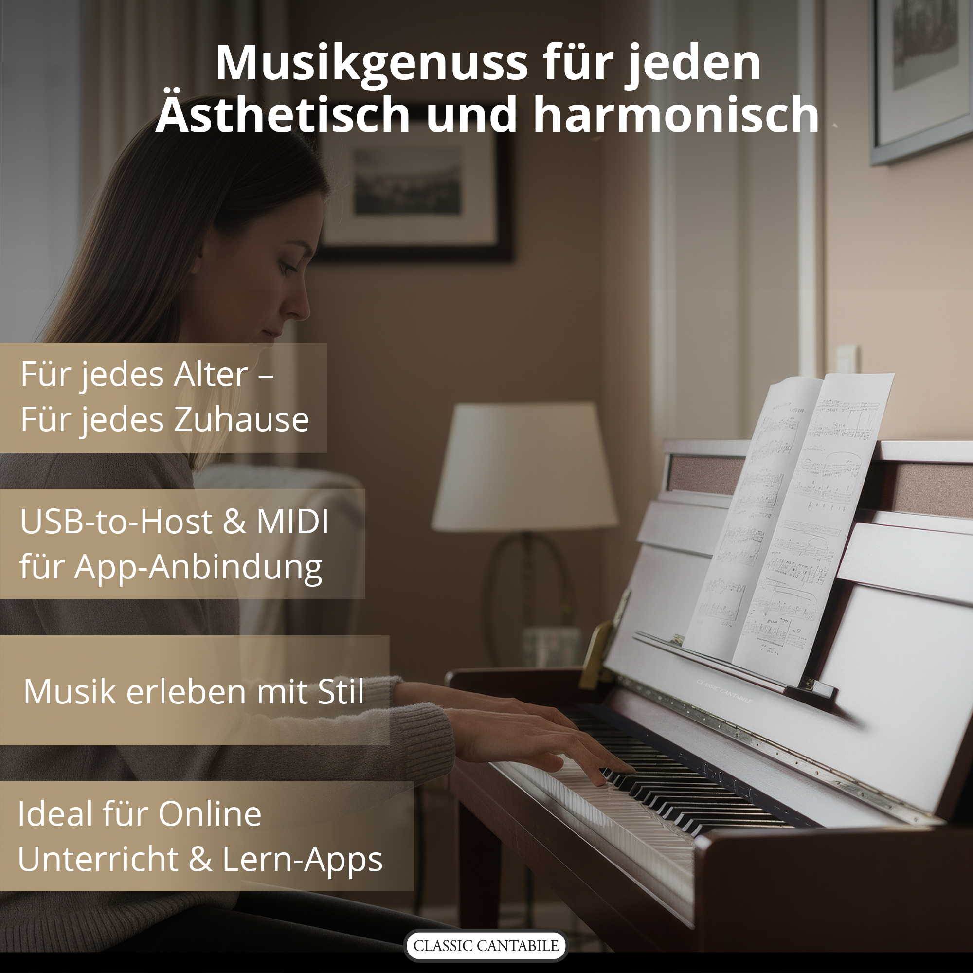 - 1 x Classic Cantabile UP-1 SM E-Piano Okoume