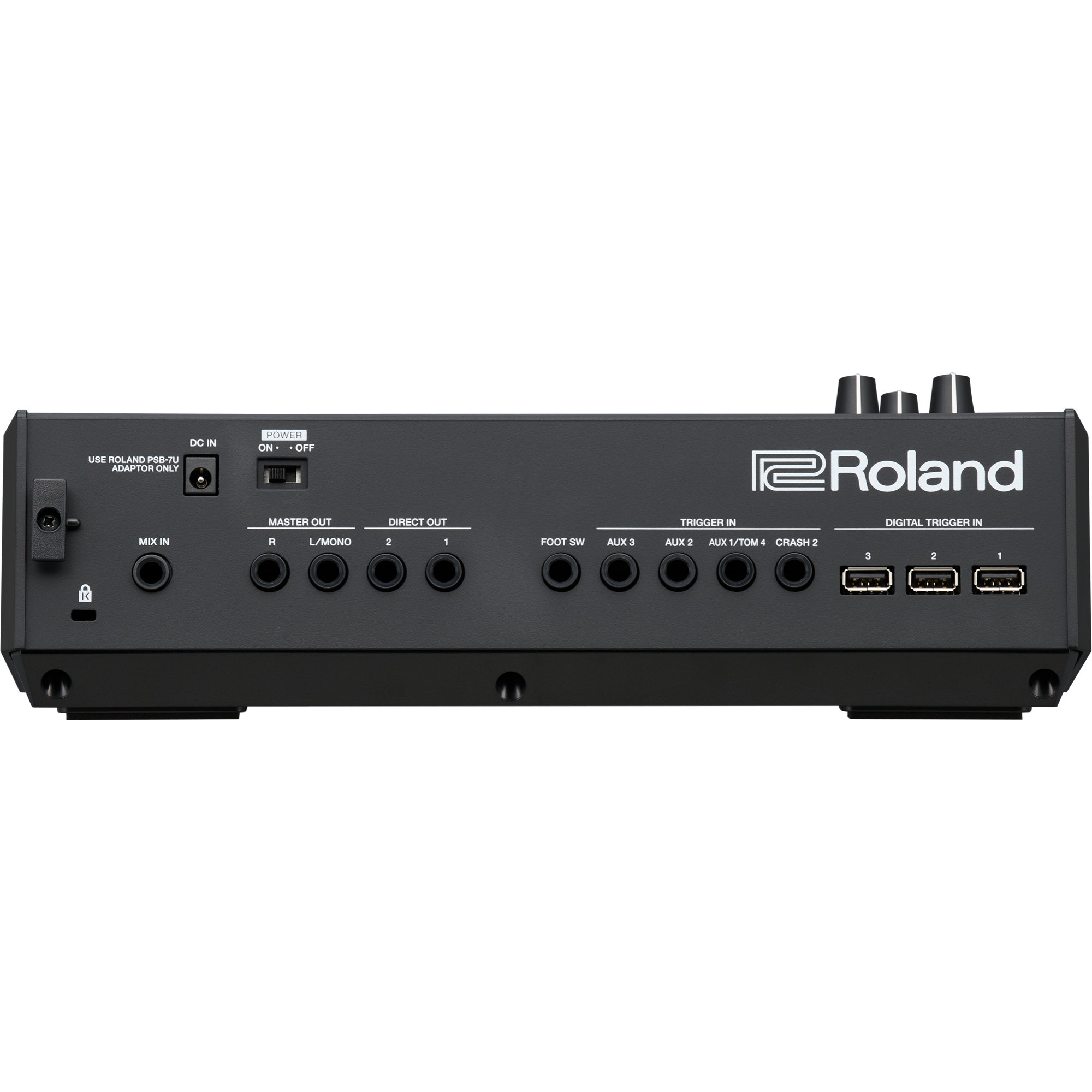 - Drie individuele pad-ingangen voor de innovatieve Roland Digital Snare-, Ride- en Hi-Hat-pads