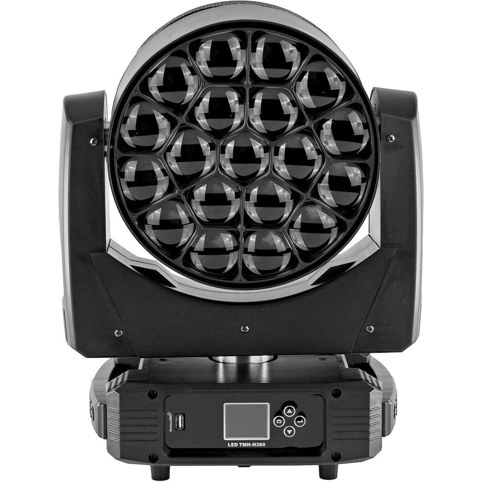 De Eurolite LED TMH-H380 Beam/Wash/Flower-effect is een professionele moving-head voor veeleisende lichtinstallaties in clubs, op podia, bij gala's, in bars, hotels en bij mobiele events. Het systeem combineert beam-, wash- en flower-effect in een compact behuizing en werkt met 19 krachtige 4in1 QCL RGBL-LEDs van elk 20 watt. Daardoor profiteer je van een krachtige output, een homogene kleurmenging en flexibele looks van smalle beams tot breed verdeelde wash-vlakken. De individueel aanstuurbare LEDs bieden bovendien creatieve mogelijkheden voor pixelsturing, gesegmenteerde effecten en dynamische chases.