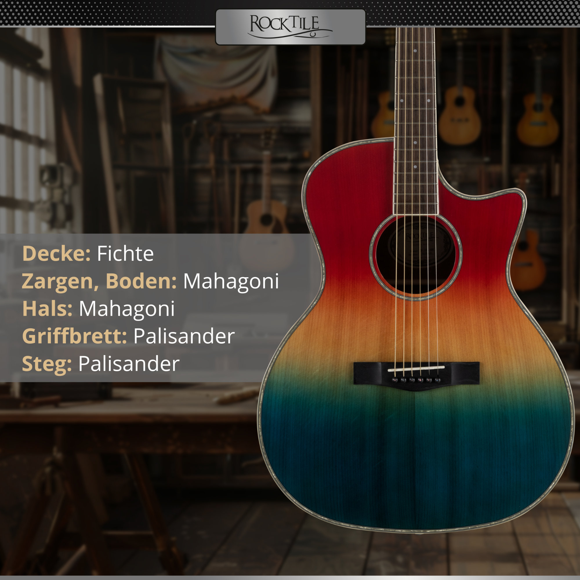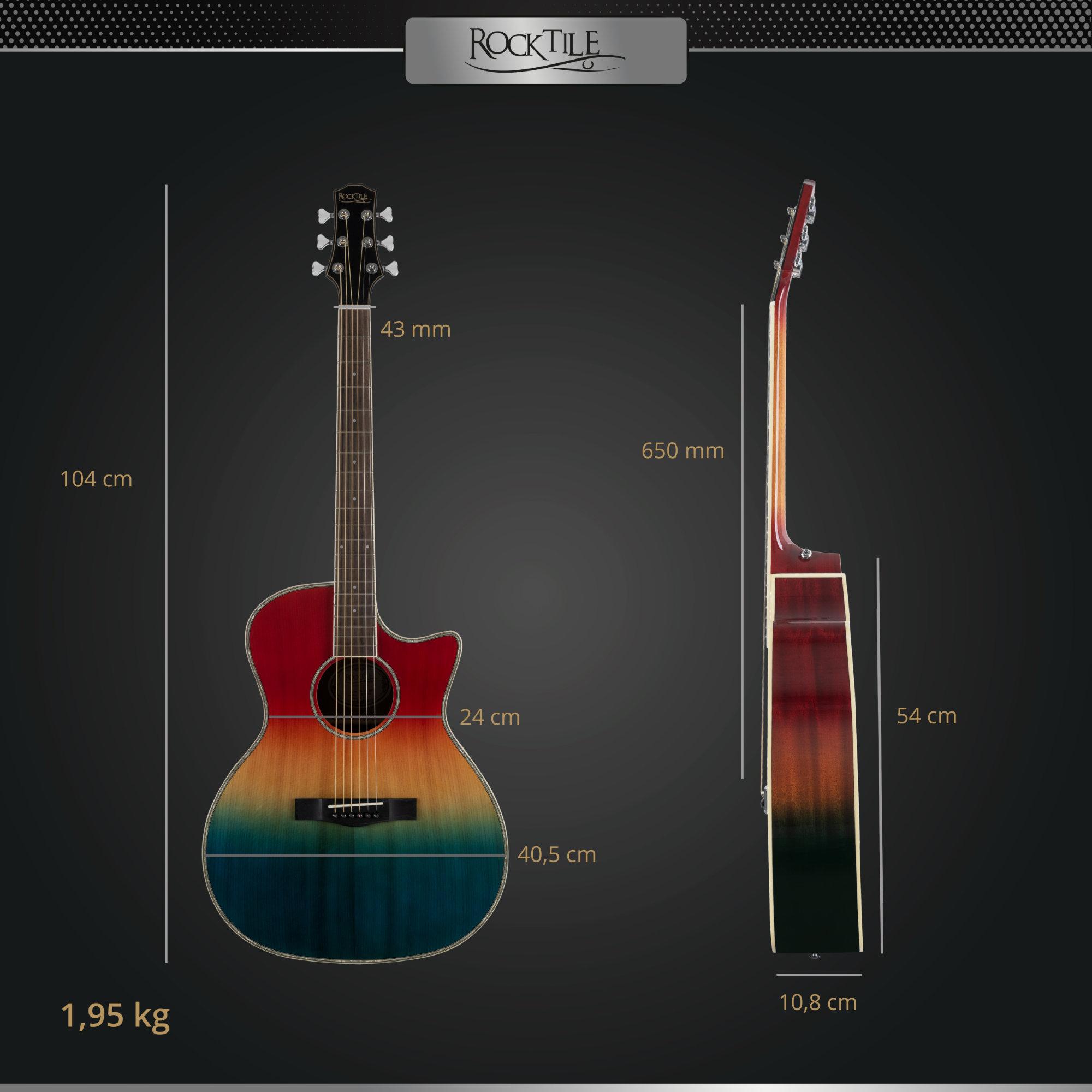 - 1 x Rocktile WSC-150C-RBW Westerngitaar Rainbow