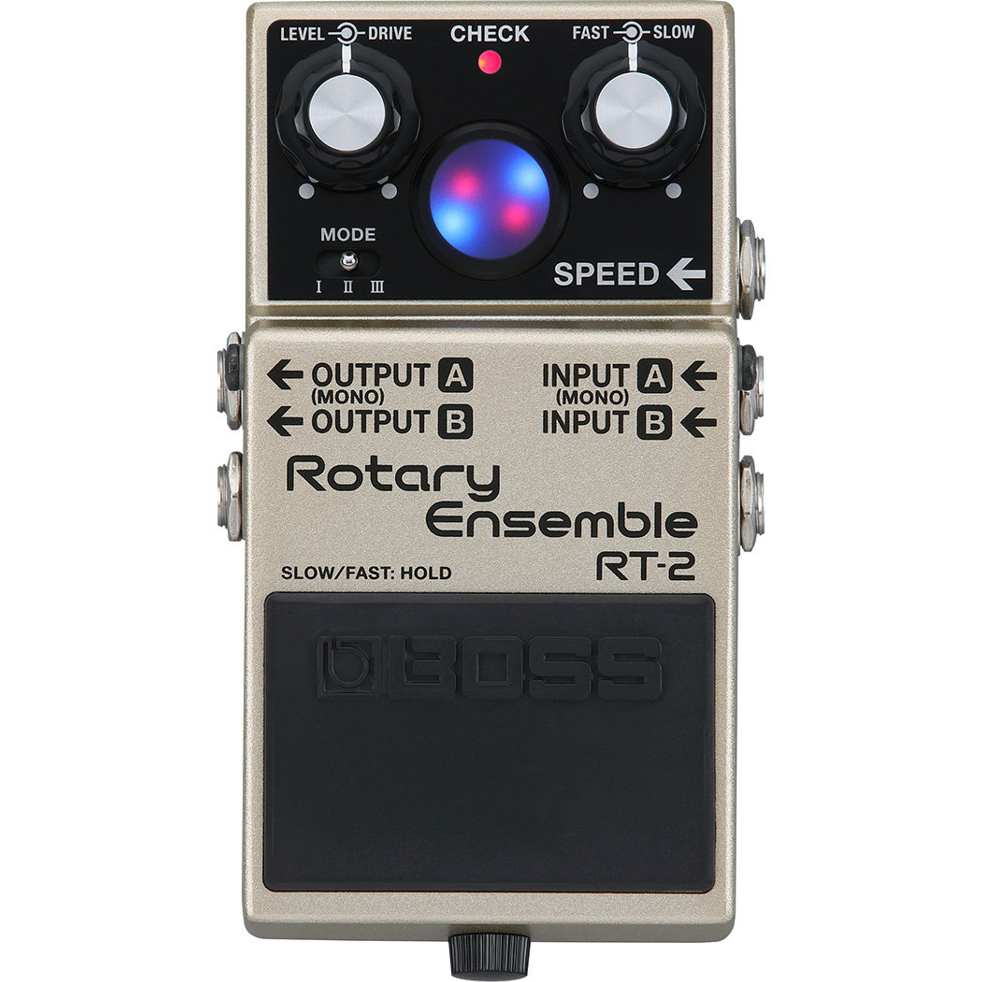 Met de drie-standen modusschakelaar van de RT-2 kun je zowel de klassieke rotary-speaker-sound als twee moderne varianten oproepen, die speciaal door Boss zijn ontwikkeld.
