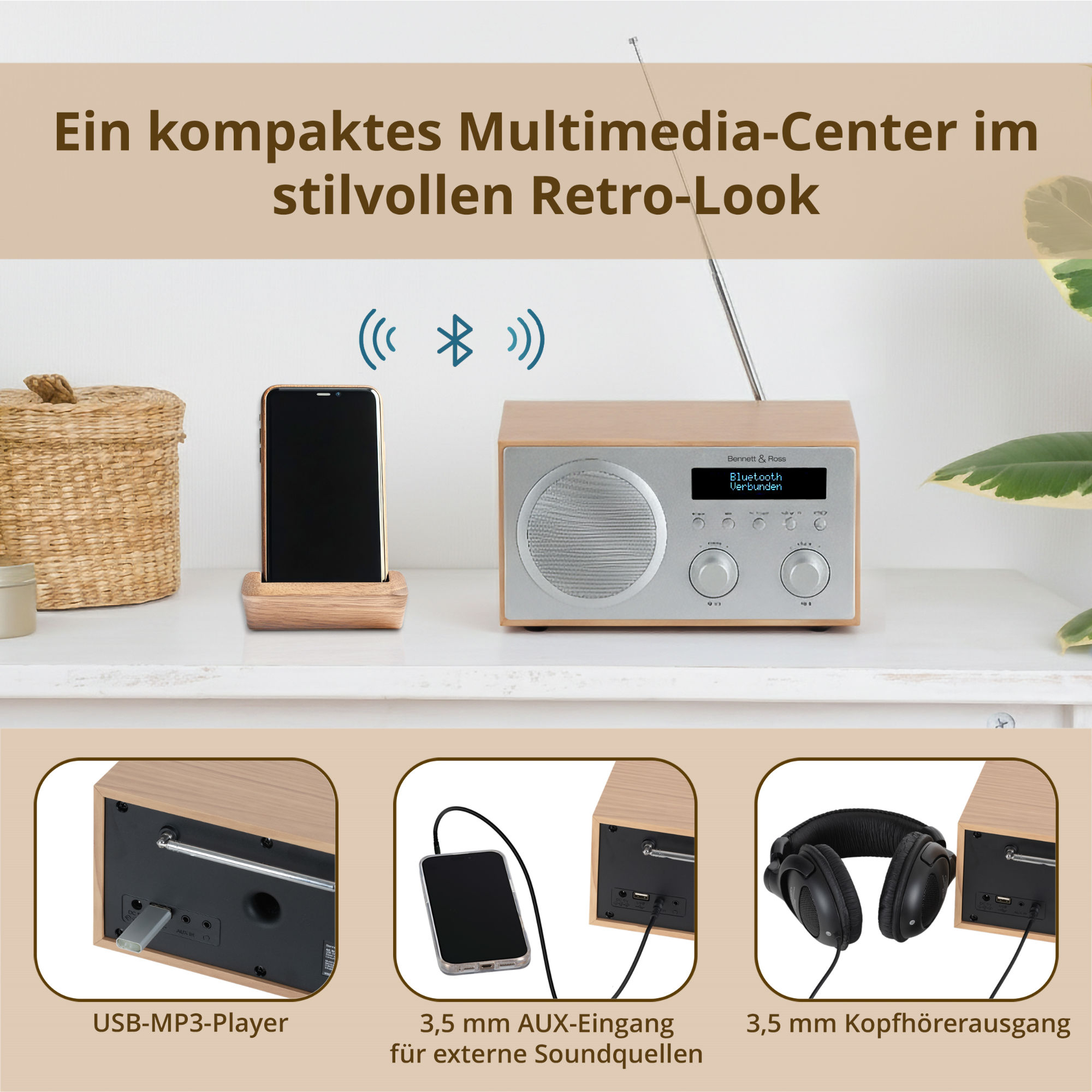 - 1 x Bennett & Ross DAB-258 NT Vikedal DAB/FM-radio met Bluetooth