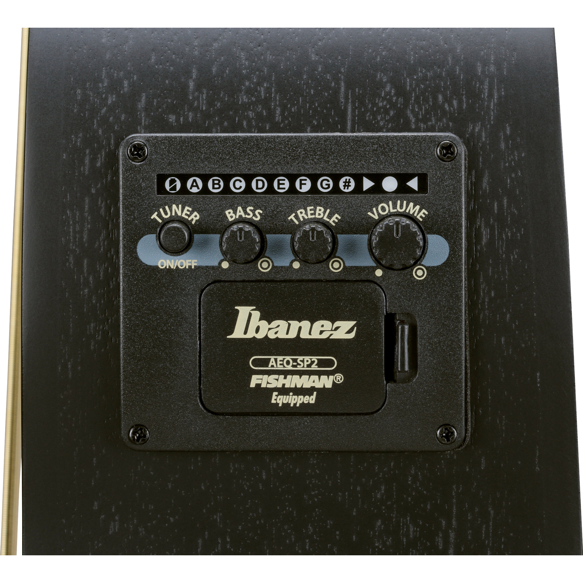 - Pickup: Fishman S-Core (onderbrug-piezo) / Ibanez AEQ-SP2 preamp (bediening: volume, bas, hoog, ingebouwde tuner, XLR & 6,3 mm uitgang)