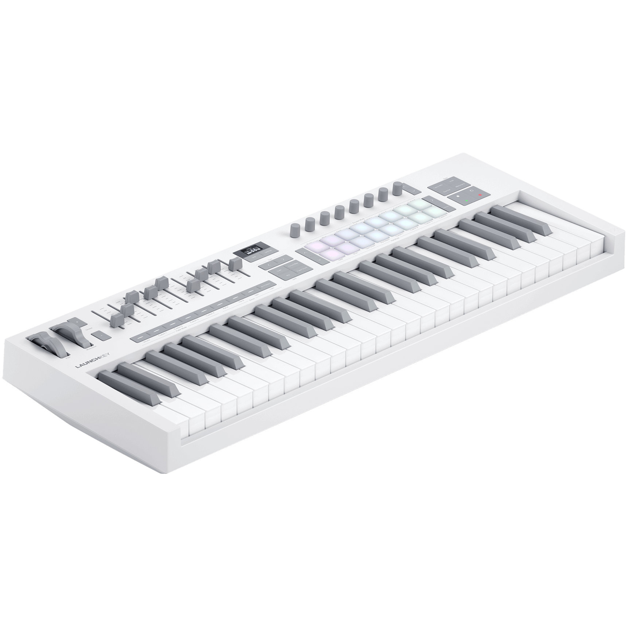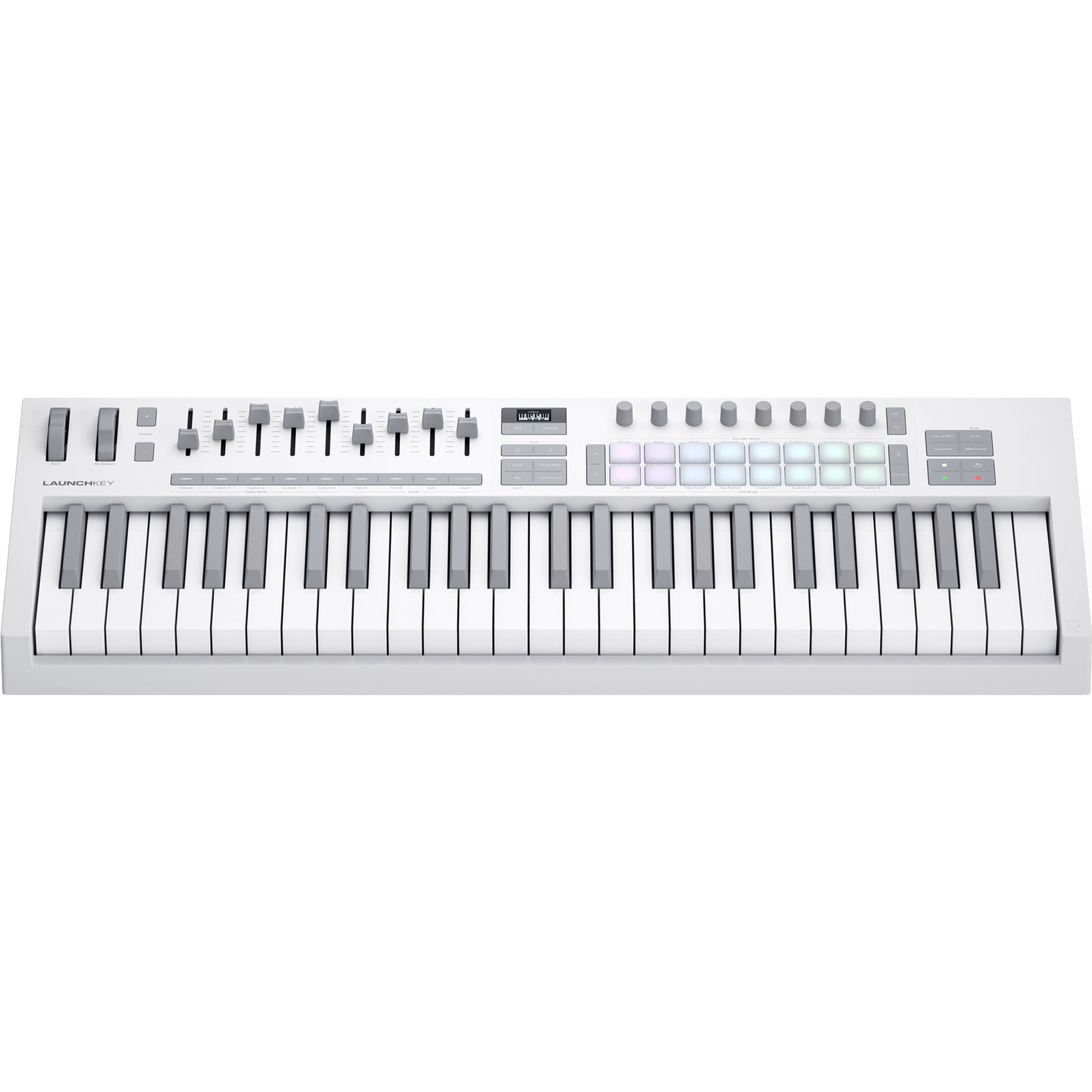 Laat je inspireren door Launchkey 49 - een compact all-in-one DAW-controller met een synthesizer-klaviatuur van drie octaven met full-size toetsen en 16 gepatenteerde FSR-pads voor finger-drumming, clip-starts en meer. De volgende generatie Launchkey geeft je ook nieuwe mogelijkheden om creatief te zijn in je DAW, met hardware-synthesizers of op je iPhone en iPad. De akkoord-, schaal- en arpeggio-modi zijn uitgebreid zodat je in de toonsoort blijft en nog expressiever kunt spelen - alles met gedetailleerde feedback via het nieuwe, haarscherpe OLED-display.