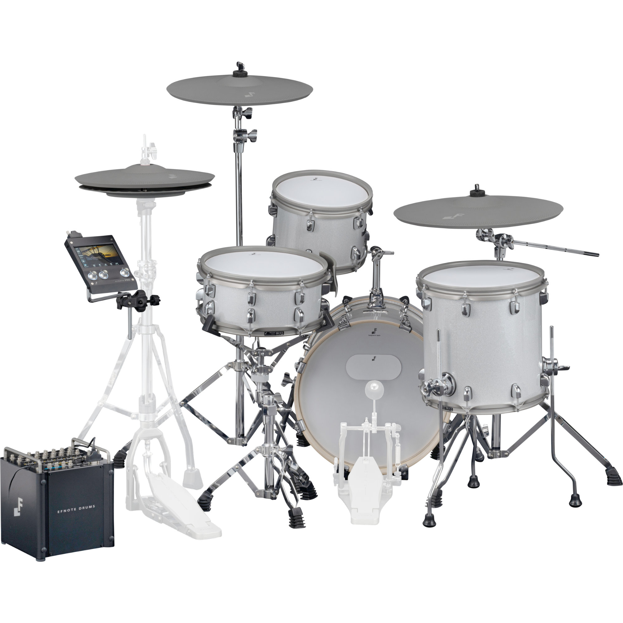 - Zubehör: 1x Verbindungskabel 2,0 m (EFD-DSUB9-2), 1x AC-Adapter (FJ-SW1202000N-EFNOTE), 10x Trigger-Kabel 3,0m (EFD-TRS-LL3), 1x Hi-Hat-Kabel L 3,0m (EFD-DIN6-LL3), Modulhalterungs-Set, Smartphone-Tablett-Set, Stimmschlüssel, Kabelbinder, Kabelaufkleber, Schnellstart-Anleitung