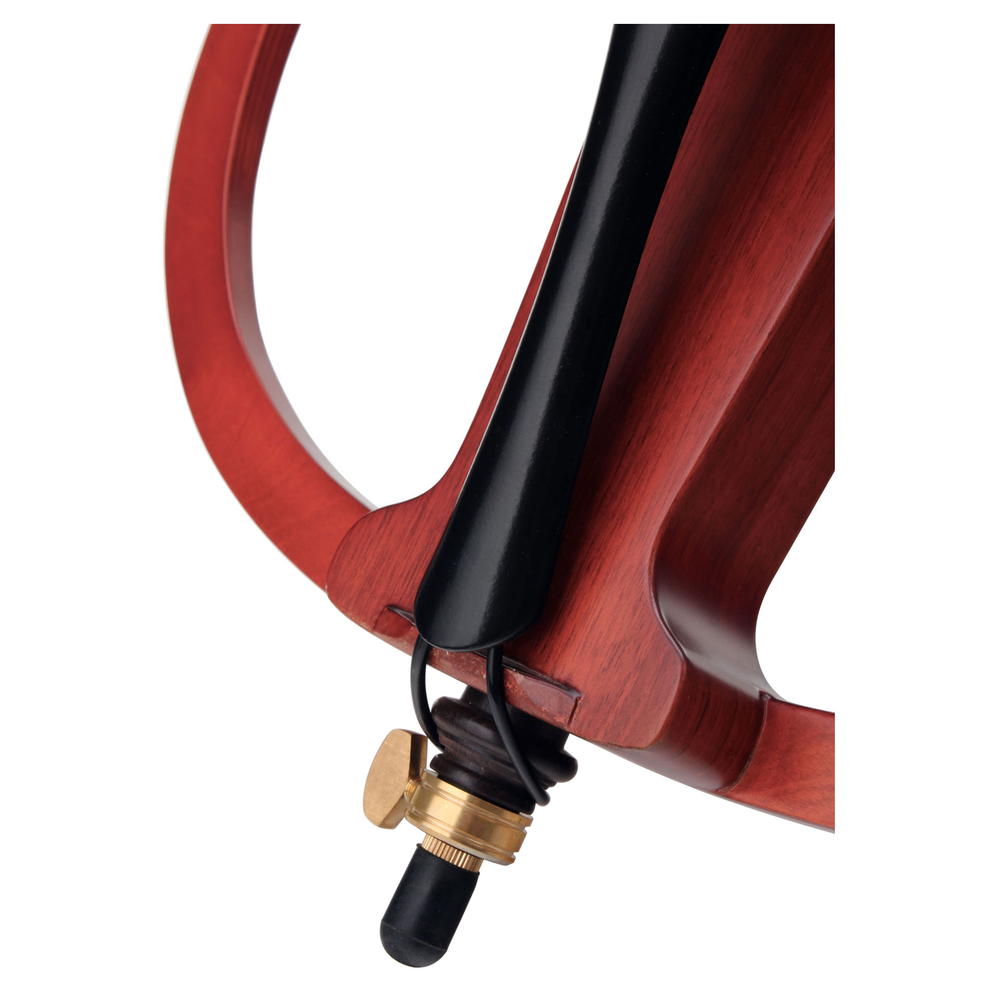Für eine angenehme Spielhaltung sorgt die Bruststütze, die ausgeklappt die Tiefenausdehnung eines akustischen Instrumentes simuliert. Sie können das Cello so trotz des kompakten, reduzierten Korpus komfortabel an Ihren Körper anlehnen.