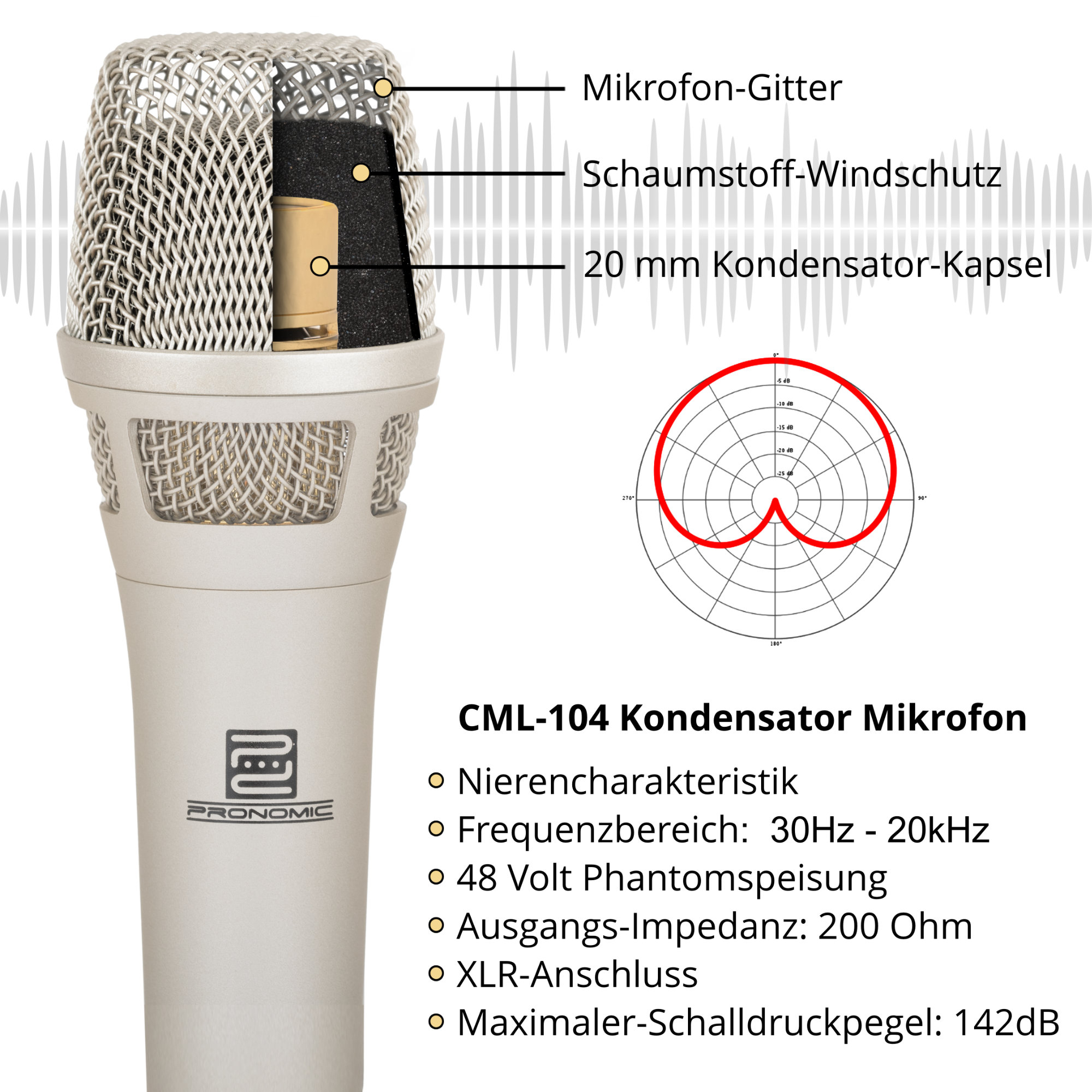 - 1 x Pronomic CML-104 Kondensator Vokalmikrofon