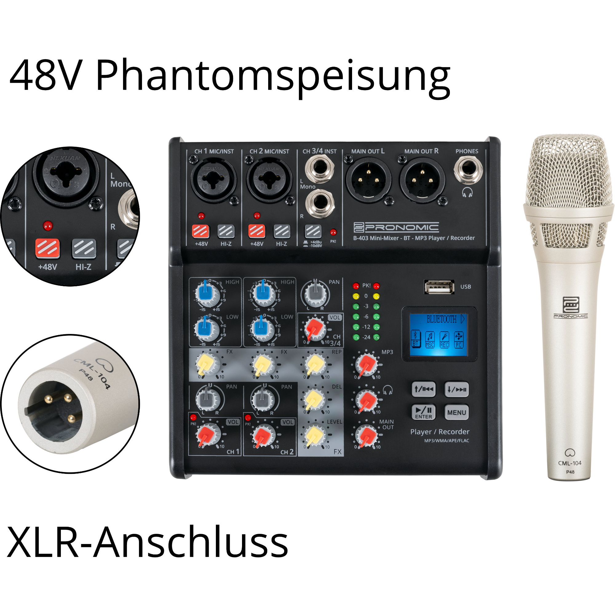 - Stromversorgung: 48V Phantomspeisung