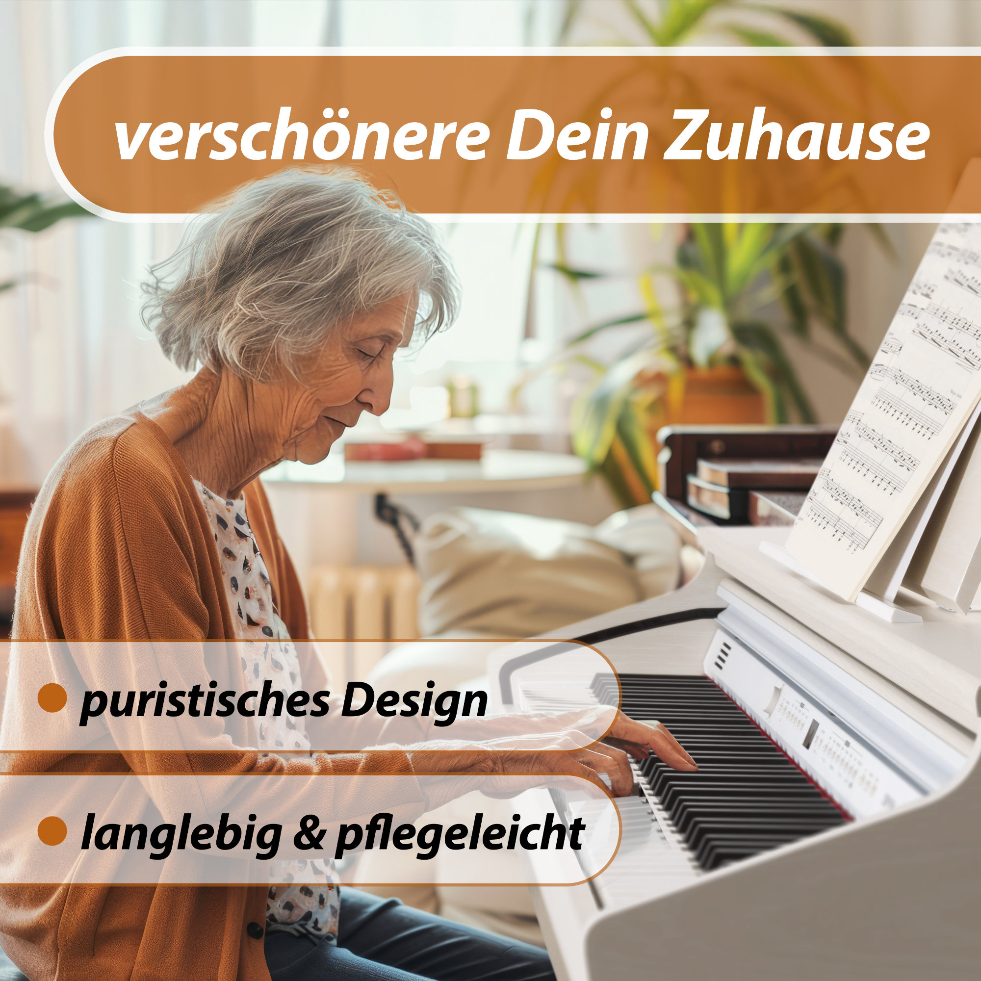 Die Klaviatur besteht aus synthetischem Elfenbein und zeichnet sich durch natürlichen Widerstand beim Drücken der Tasten aus.