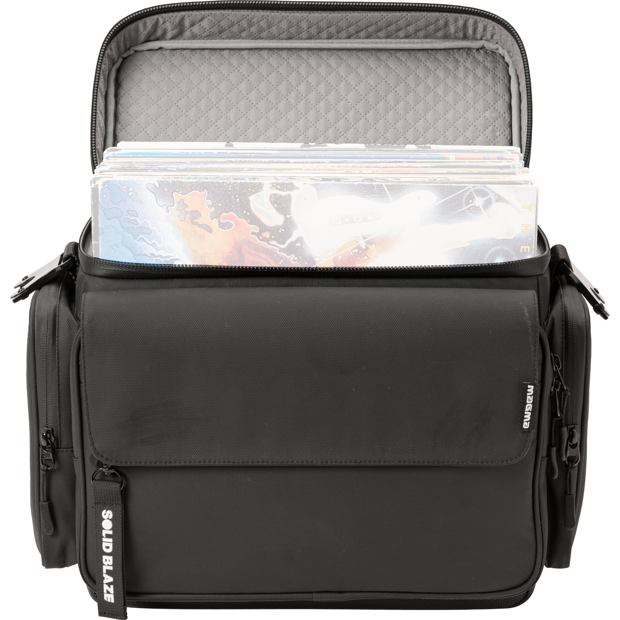 De royale zij- en voorvakken bieden extra ruimte voor koptelefoons, naalden, 7" vinyl en ander accessoires, waardoor de Solid Blaze Vinyl-Bag de ideale metgezel is voor onderweg.