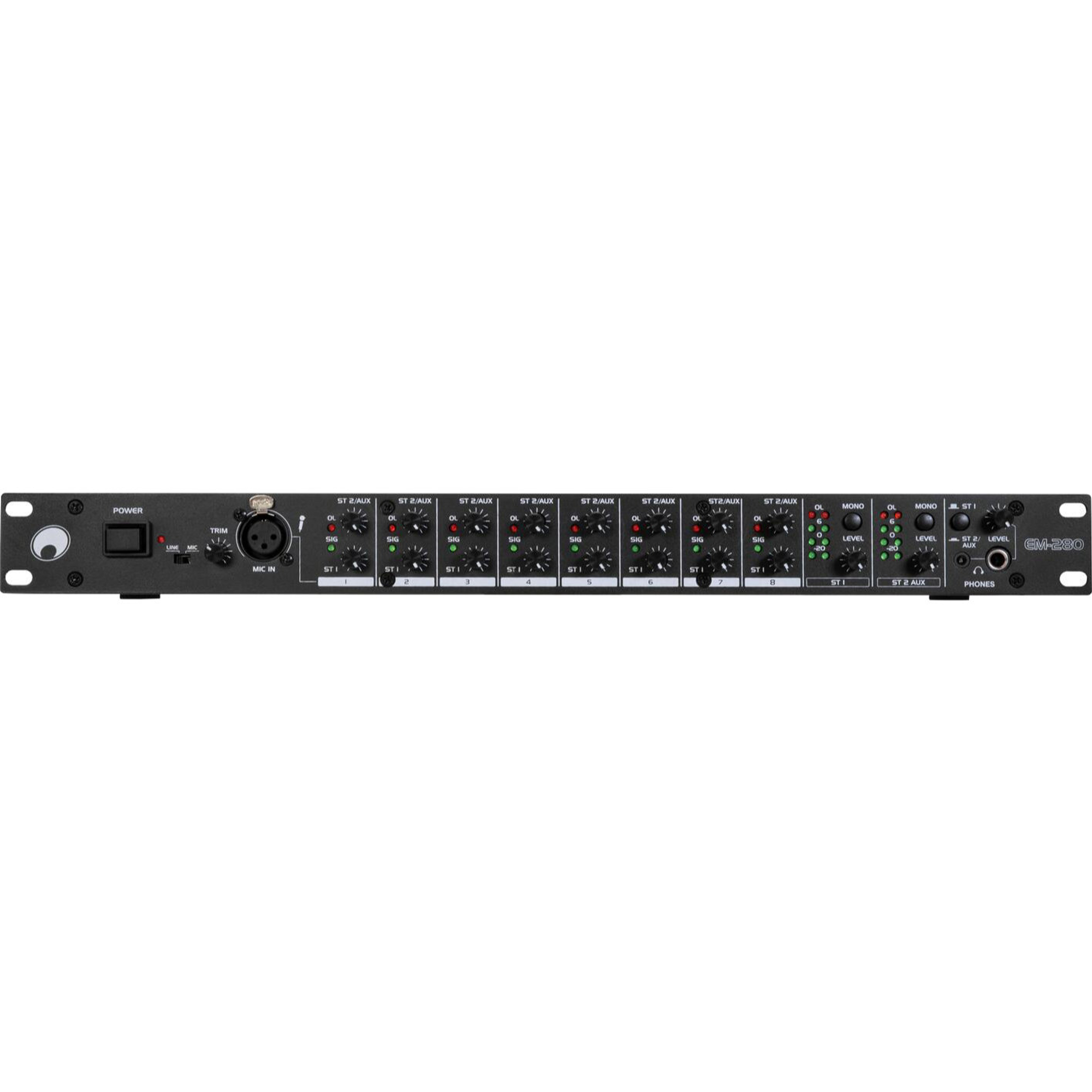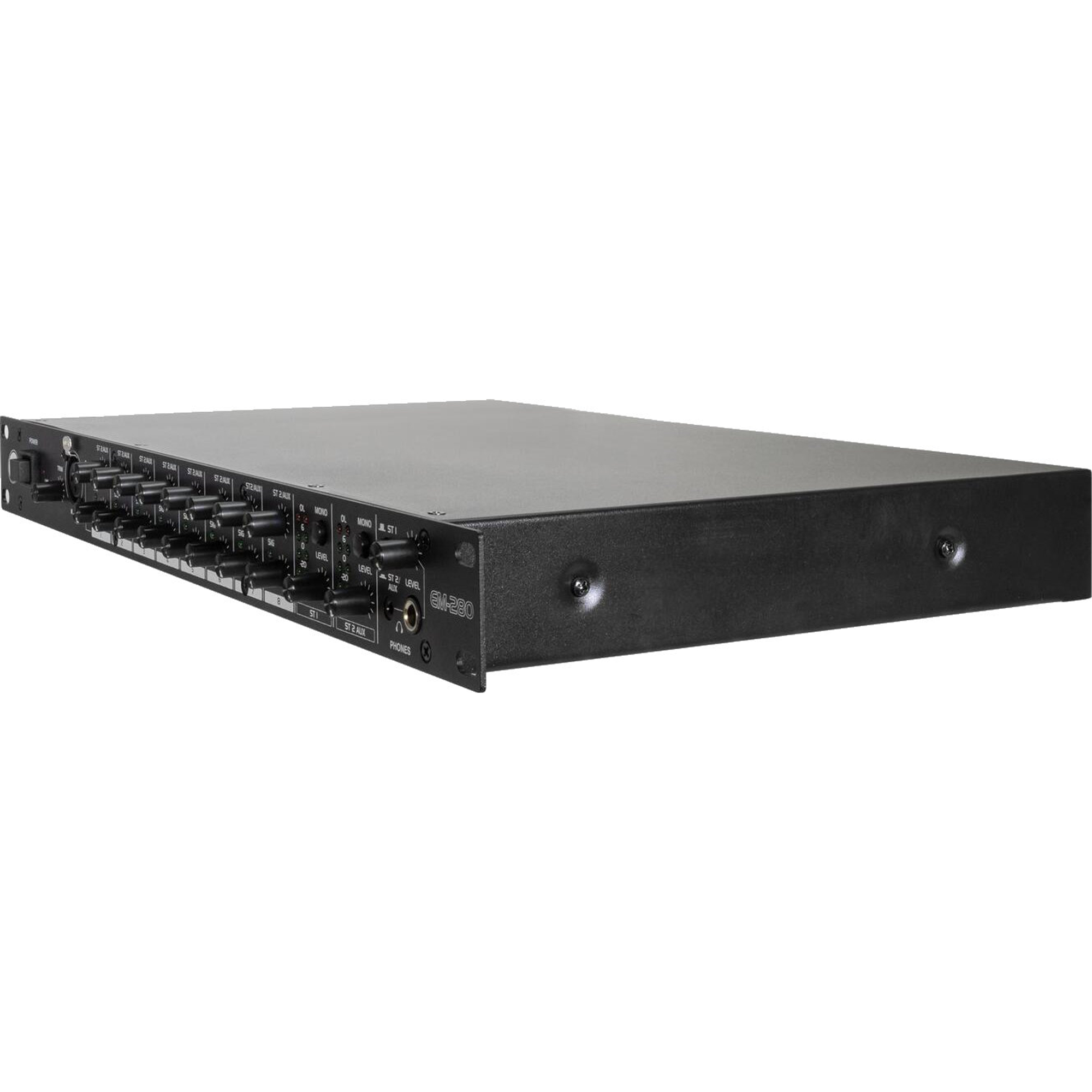 Het nominale niveau is omschakelbaar tussen +4 dBu en -10 dBV, zodat het apparaat zich naadloos aan verschillende signaalniveaus aanpast. In elk kanaal vind je signaal- en clipindicatoren; de masteruitgangen hebben een 4-cijferige stereo-LED-meterweergave.