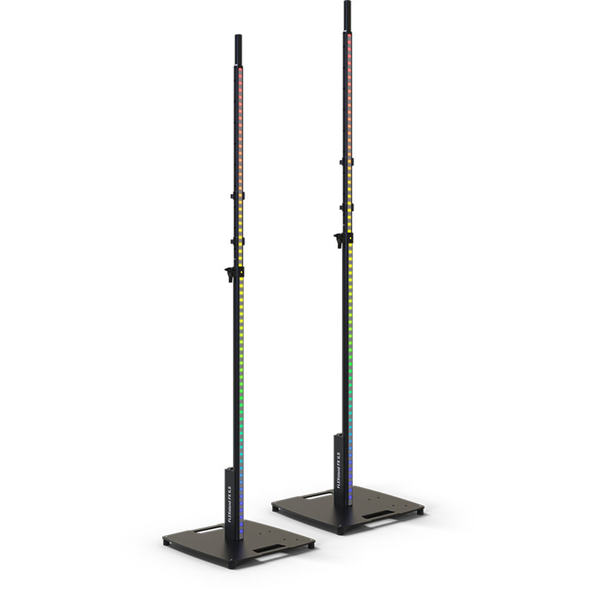 De FLEXstand FX ILS heeft 68 ingebouwde Quad-Color-LEDs (RGB+WW, elk 0,8 W) die in indrukwekkende kleurverlopen en strobe-effecten tot 20 Hz oplichten. De auto-programma's passen zich automatisch aan de gekozen statiefhoogte aan en creëren een harmonisch lichtbeeld - perfect afgestemd op muziek en beweging.