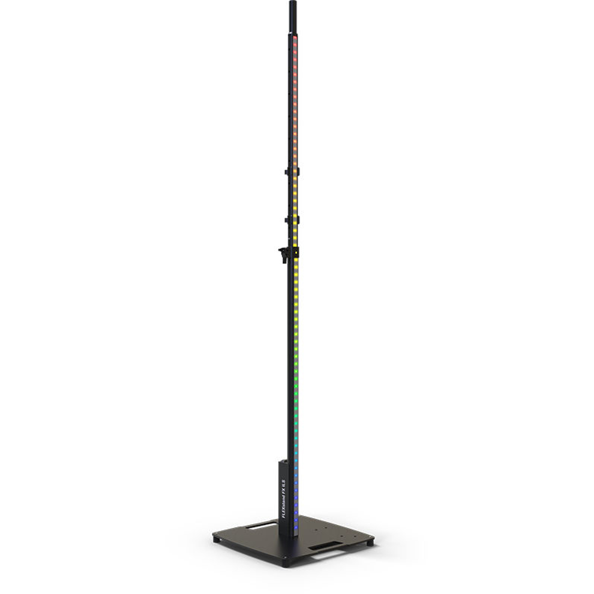 Het FLEXstand FX ILS beschikt over 68 ingebouwde Quad-Color-LEDs (RGB+WW, elk 0,8 W), die in indrukwekkende kleurverlopen en strobe-effecten tot 20 Hz oplichten. De automatische programma's passen zich automatisch aan de gekozen statiefhoogte aan en creëren een harmonieus lichtbeeld - perfect afgestemd op muziek en beweging.