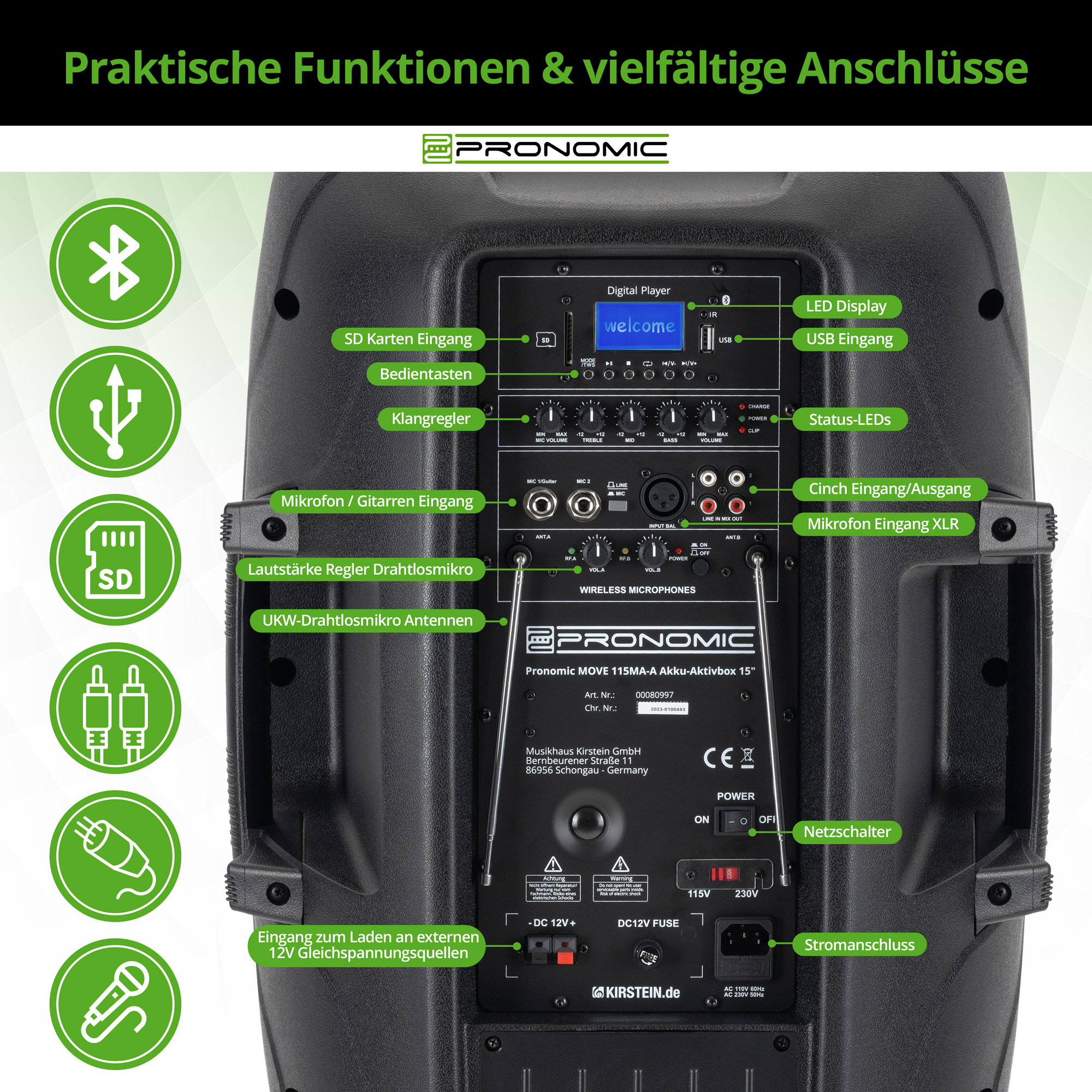 - 2 x Pronomic MOVE 15MA-A Akku Aktivbox