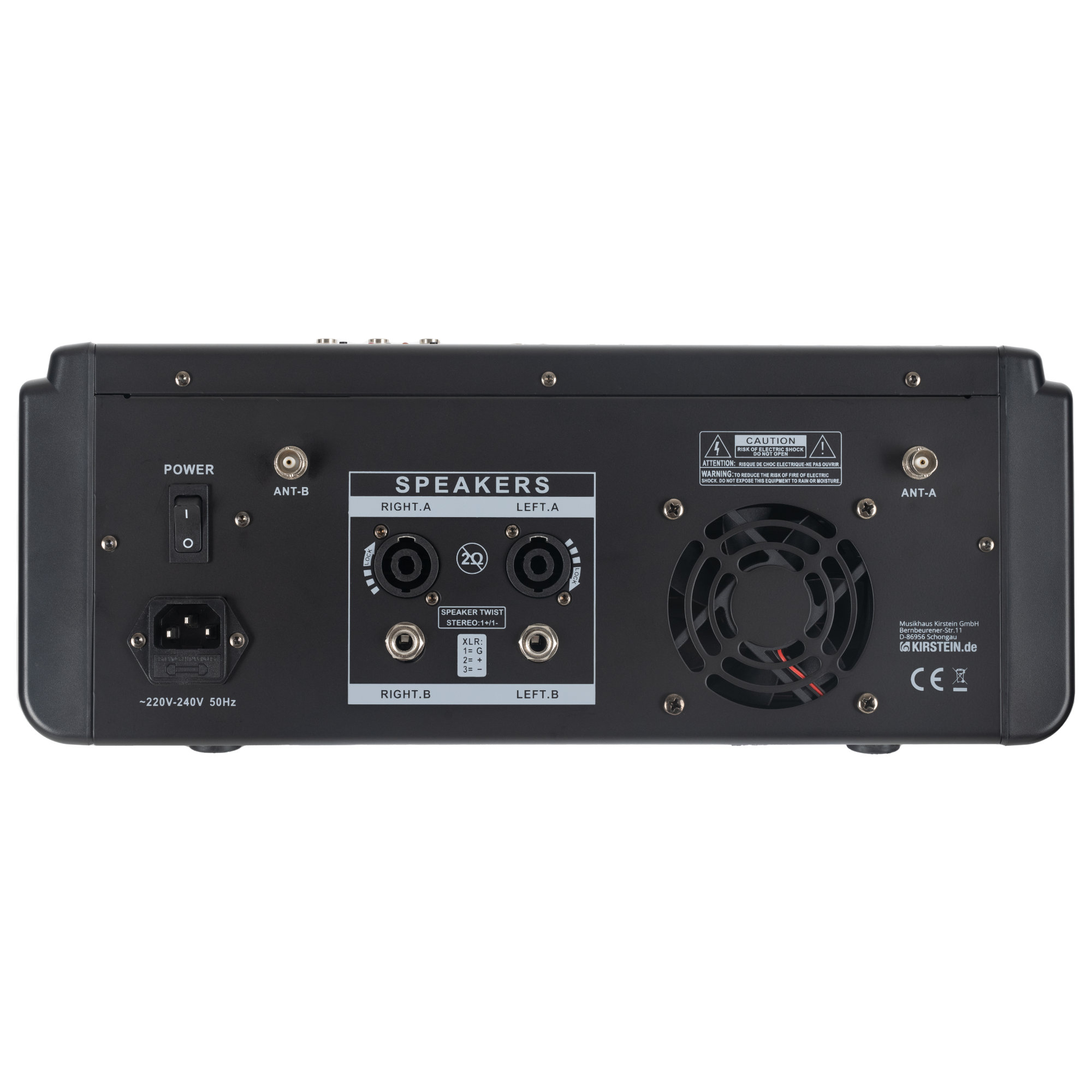 - Uitgangen 6.3mm Klinke, speakON, XLR