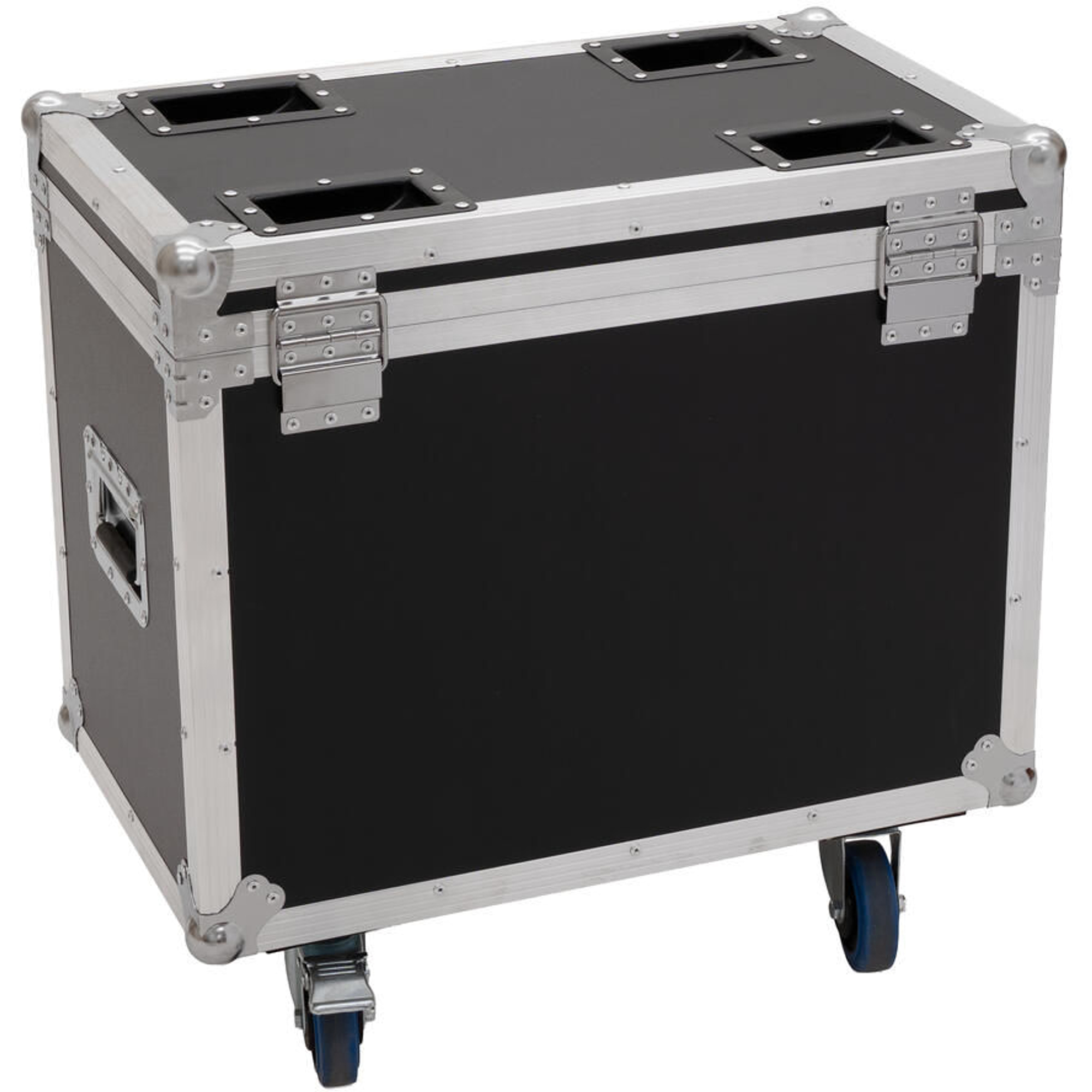 Een stevig 30 mm aluminiumprofielkader met afgeronde hoeken geeft het flightcase hoge slijtvastheid. De behuizing van 9 mm dik materiaal is ontworpen voor intensief gebruik in de evenementensector. Verchroomde opklapgrepen en stevige vergrendelbare scharnieren garanderen betrouwbare bediening.