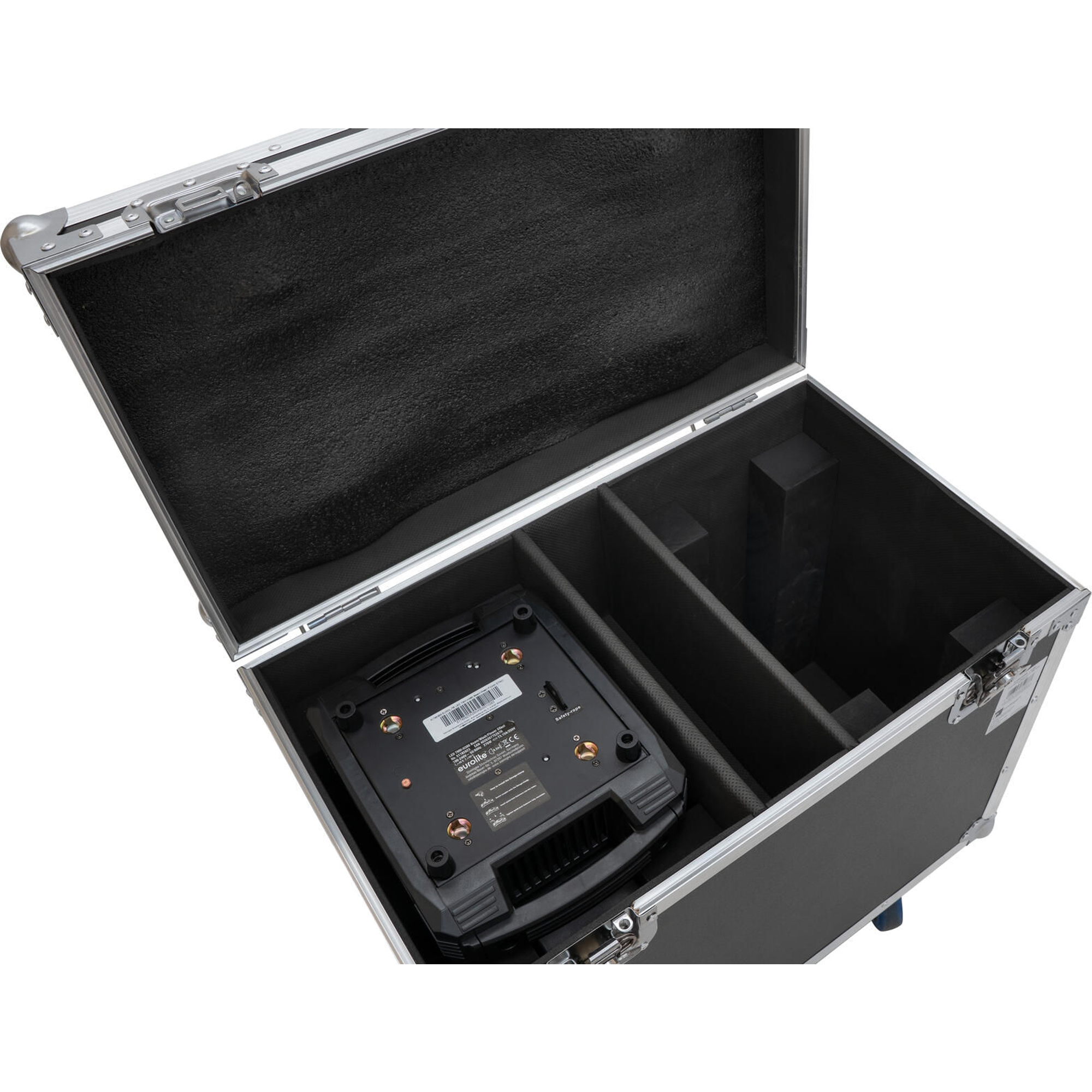 De binnenkant is volledig bekleed met hoogwaardig schuim en biedt perfecte ondersteuning voor je apparatuur. Ook het deksel is gevoerd, waardoor stoten en trillingen effectief worden gedempt. Zo blijven je Moving Heads zelfs onder zware transportomstandigheden veilig en onbeschadigd.