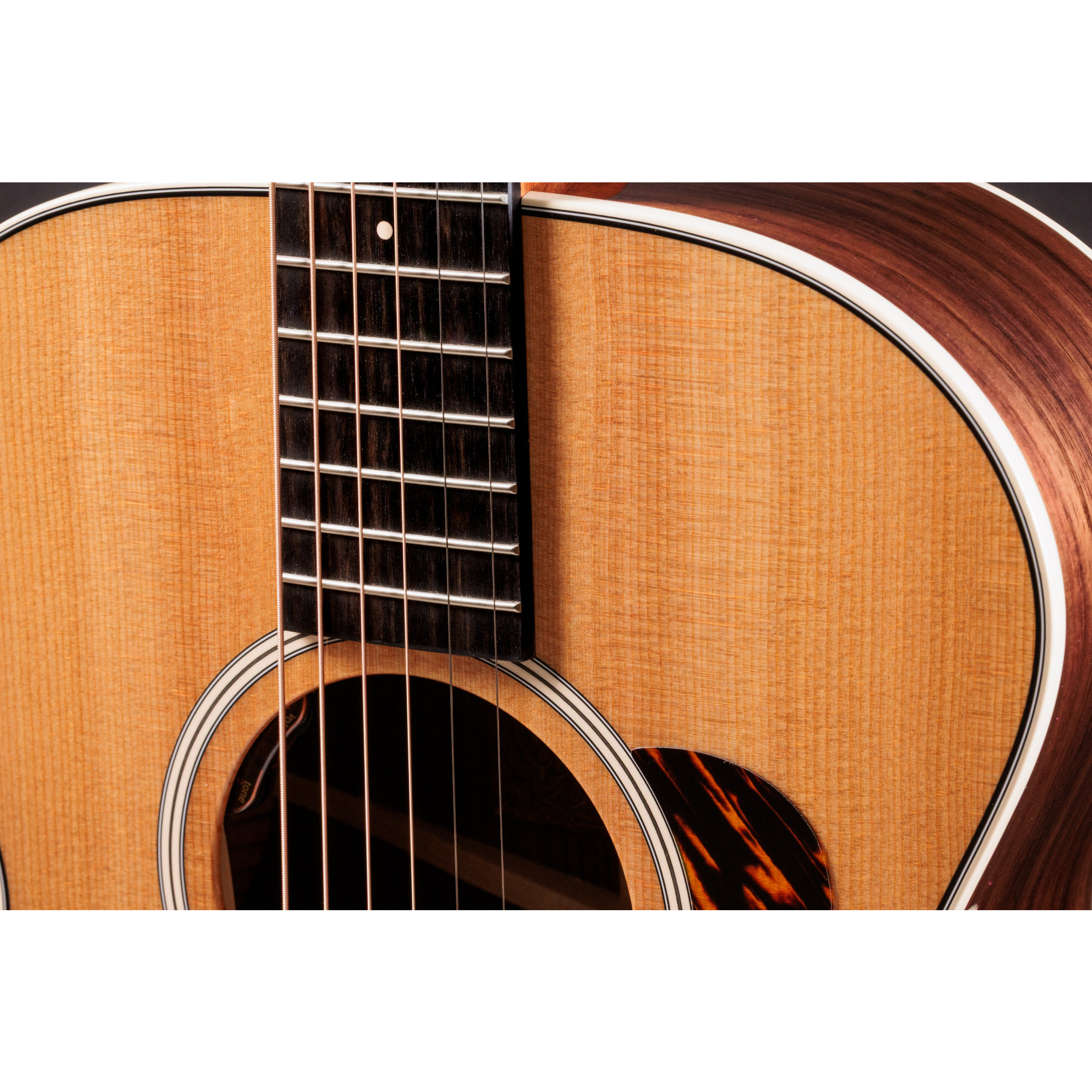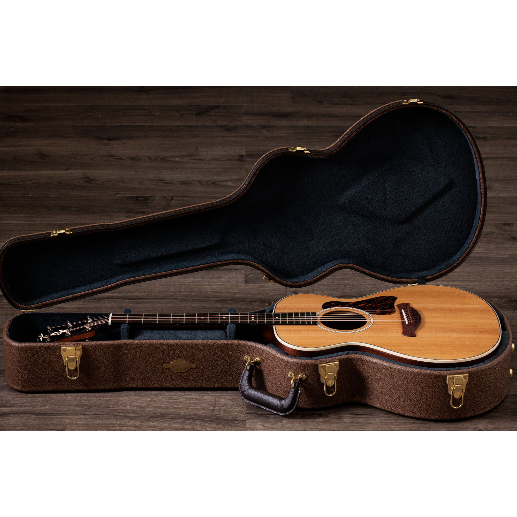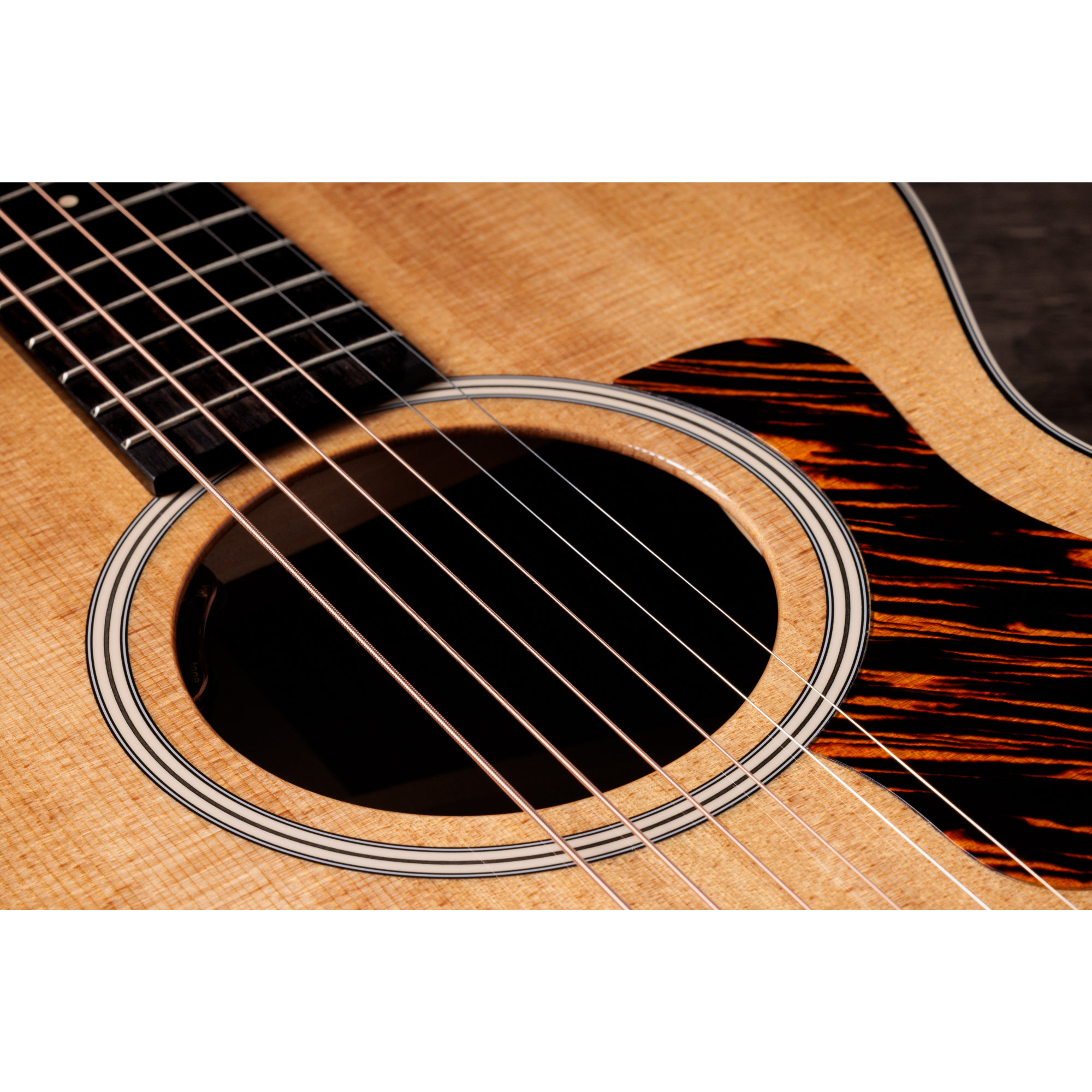 De Taylor Gold Label-collectie combineert traditionele klankesthetiek met moderne bespeelbaarheid en richt zich op gitaristen die een warme, karaktervolle toon zoeken. Met een getorrefieerde Sitka-spar-top en een achterblad en zijkanten van Indiaas palissander levert dit model een bijzonder resonante, gebalanceerde klank met uitgesproken diepte en helderheid. De mahoniehals in combinatie met een toets van West-Afrikaans ebbenhout zorgt voor een comfortabel speelgevoel en precieze respons.