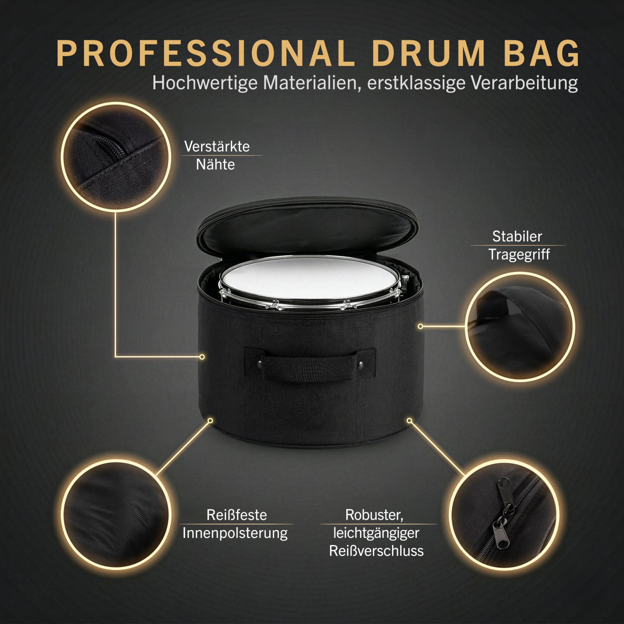 Juist in het dagelijkse muzikantenleven telt eenvoudig en snel handelen. De tas is ontworpen voor het veilige en passend transport van verschillende trommels en onderdelen. Dat maakt inpakken makkelijker en zorgt dat je apparatuur onderweg netjes en beschermd opgeborgen is. Dankzij de robuuste, soepel lopende rits is de inhoud snel in- en uitgepakt. Dat bespaart tijd bij op- en afbouw en maakt de tas tot een slimme keuze voor frequente inzetten bij sessions, gigs, bandrepetities of evenementen. De stevige draaggreep ondersteunt het veilige transport en ligt prettig in de hand.